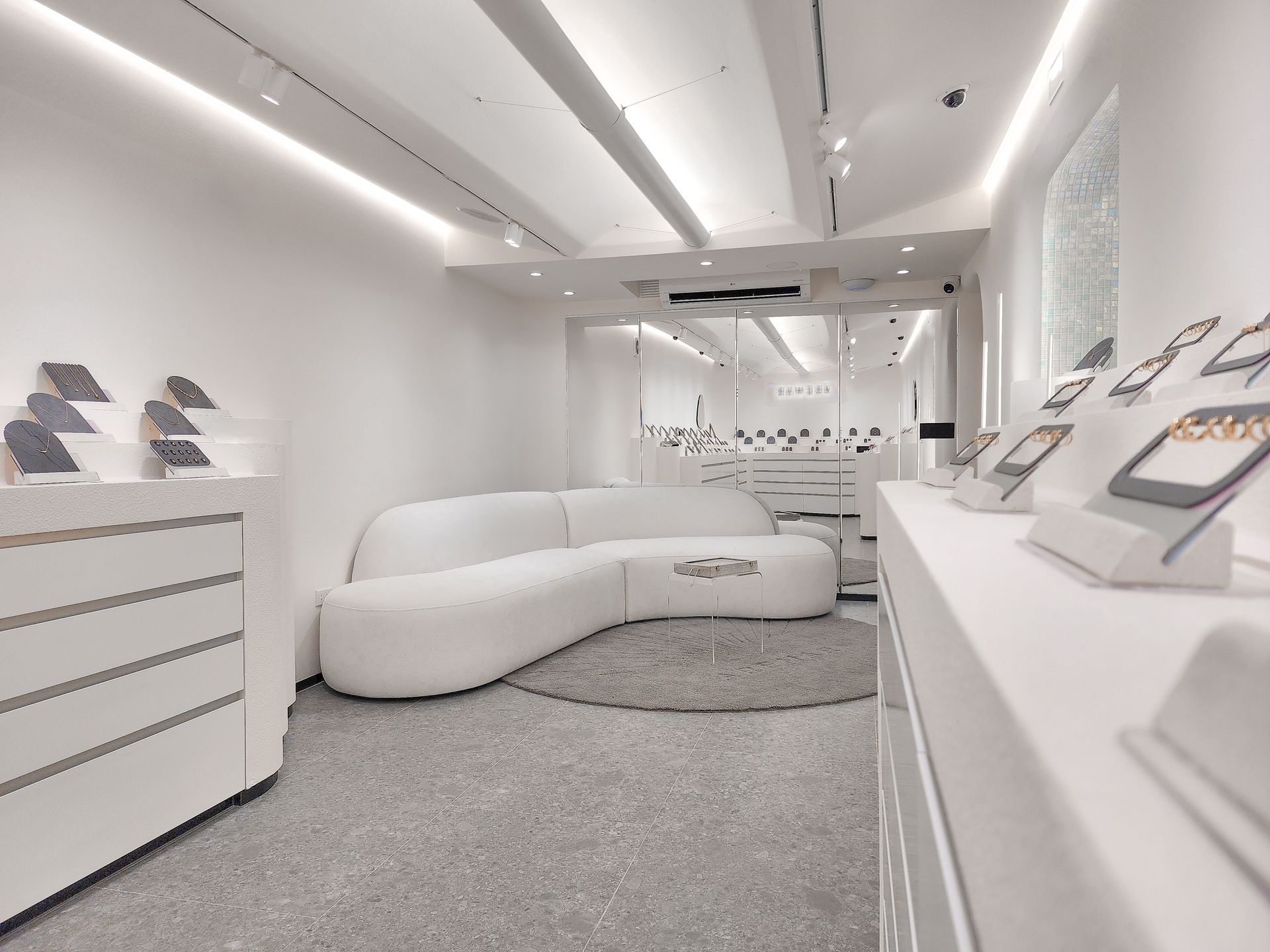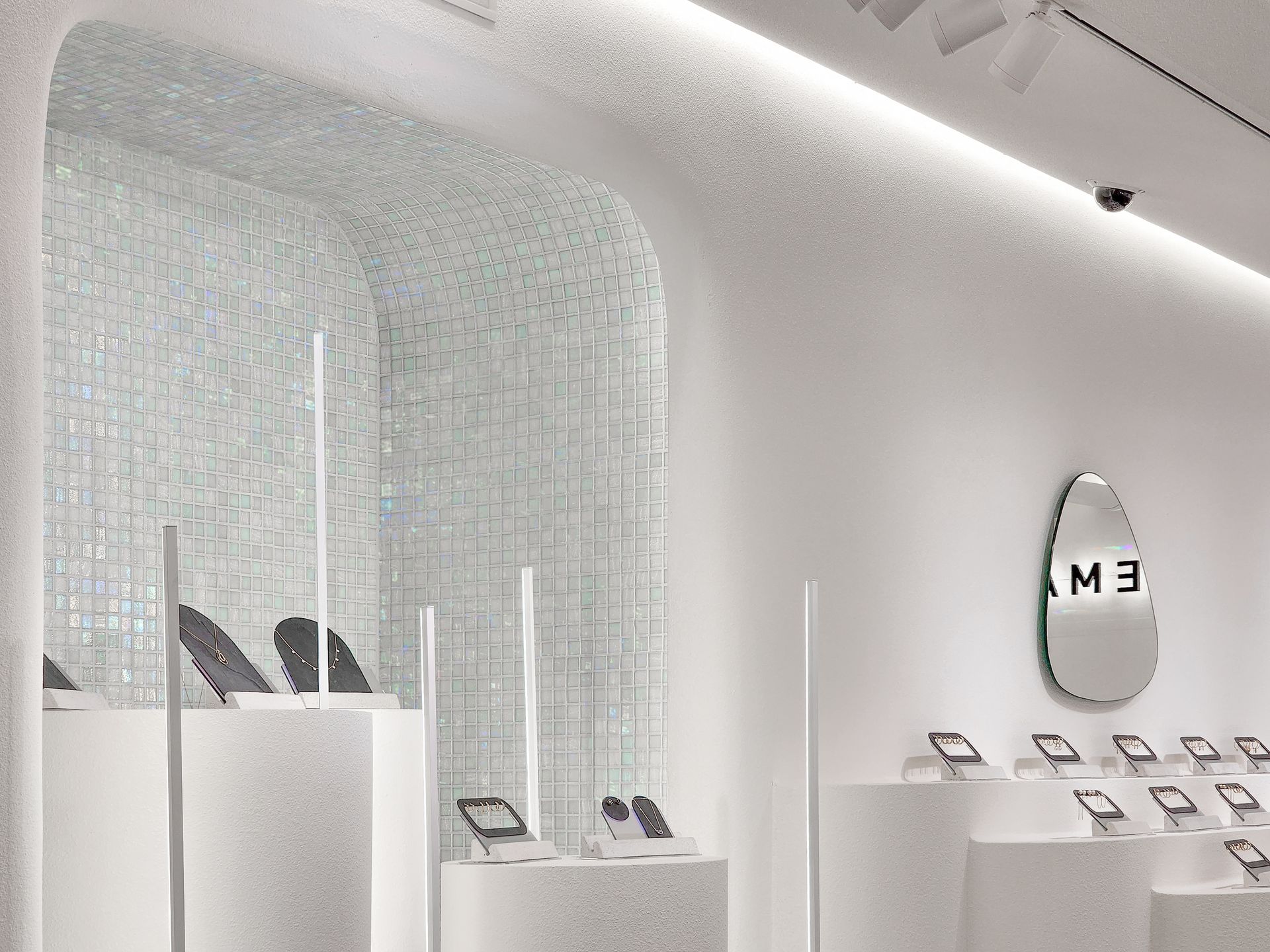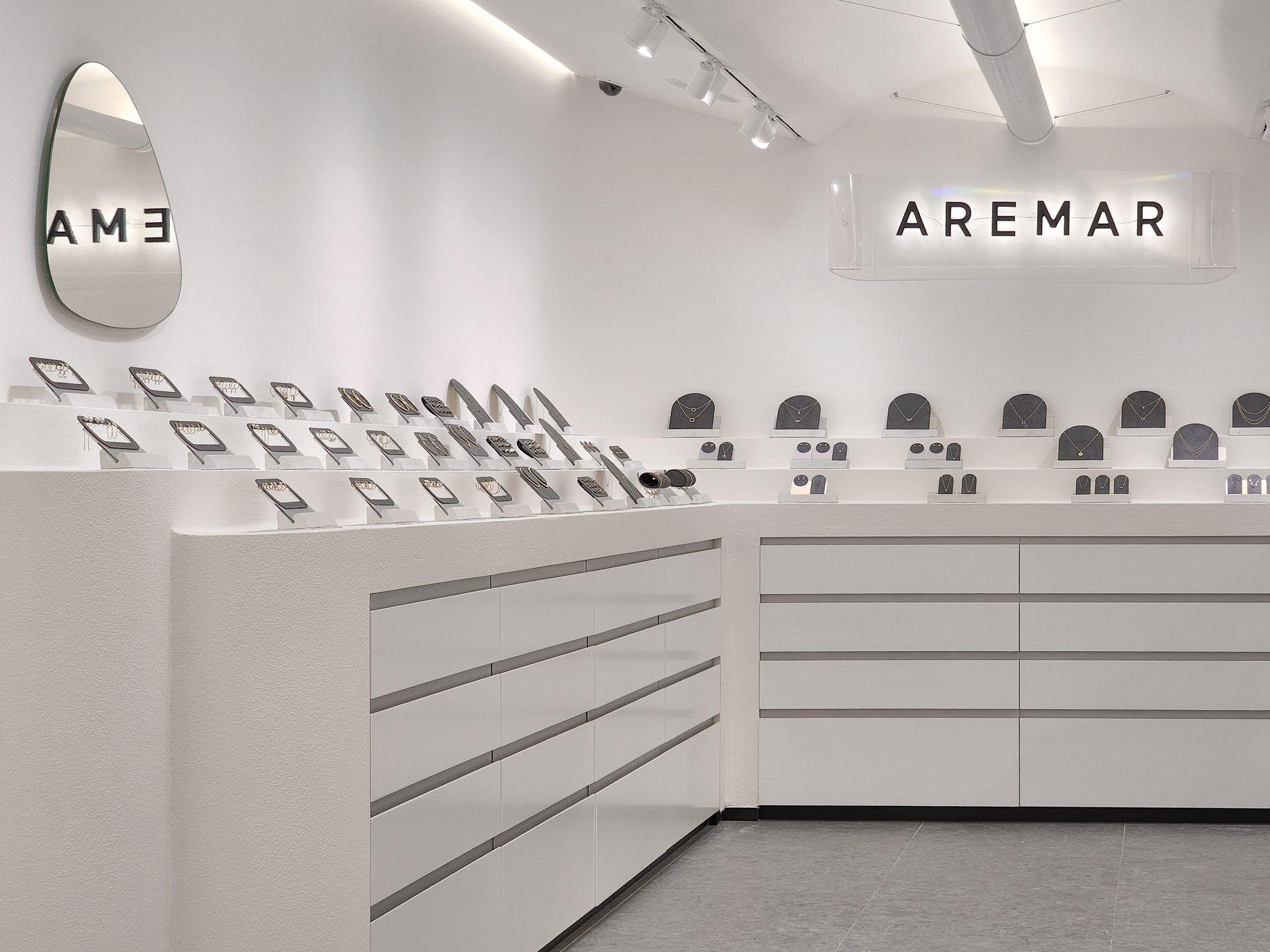 Aremar no es solo una joyería; es una experiencia inmersiva que celebra la conexión entre el diseño arquitectónico y el arte de la orfebrería. Cada elemento del espacio, desde las formas redondeadas hasta las texturas y materiales, invita al cliente a descubrir el lujo desde una perspectiva única y envolvente.